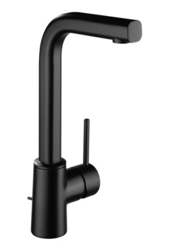 Individual Waschtischarmatur GRACE, schwarzmatt, Ausladung 130mm, Höhe bis Strahregler 270mm, Kartusche 35mm, mit Heißwasserbegrenzer, Auslauf schwenkbar, Werkstoffe nach TrinkwV und UBA, Hebel Metall, Flexschläuche 3/8 DIN DVGW, Strahlregler Durchflusseklasse A, Cache, schwenkbar, für Standmontage, seitengesteuert, mit Ablaufgarnitur 1 1/4, mit Schnellbefestigung