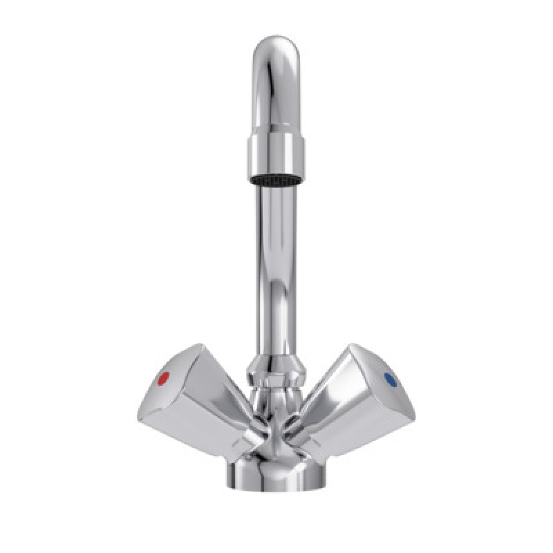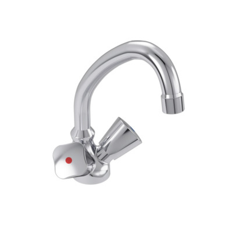 Waschtischzweigriffarmatur DN 6 Griff VIGOUR Einlochmontage Auslaufverschraubung G 3/4" Messing verchromt versenkbarer Kette und schwenkbarem Rohrauslauf Ausladung: 145 mm Auslaufhöhe: 142 mm Gesamthöhe: 202 mm Luftsprudler: M22 x 1 Geräuschverhalten DIN 4109 Gruppe I Prüfzeichen P-IX 7207/IA mit Befestigungssatz Armaturen-Anschlussschlauch M10 x 1 Länge: 370 mm Fettkammer-Oberteile geschlossenes Betätigungselement verchro mt Griffmarkierung: blau / rot Fabrikat: VIGOUR Modell: individual Artikel-Nr.: V1ZK
